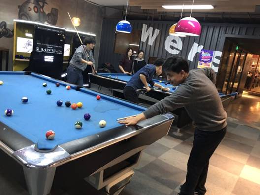 同事們在一片歡聲笑語中進行了一系列休閑游戲活動:扔飛鏢、打桌球、跳舞機、下象棋、狼人殺桌游等。活動氛圍其樂融融,大家各取所愛,玩的十分盡興。