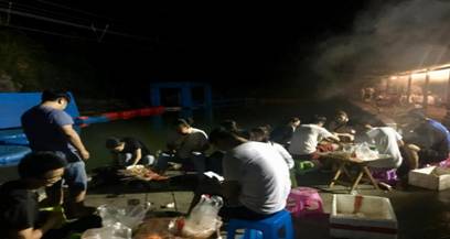 8月16日下午,我們便坐上了前往桐廬的大巴車,在兩個(gè)小時(shí)的車程中,大家在大巴上聊天做游戲,最后游戲的獎(jiǎng)品就是第二天漂流用的水瓢,有了水瓢在漂流的時(shí)候會(huì)更有樂(lè)趣,大家積極參與游戲中,歡聲笑語(yǔ),很快就到了燒烤的地方。