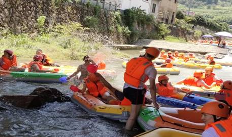 考慮到杭州炎熱的天氣,活動(dòng)決定去桐廬虎嘯峽漂流。