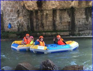 第二天一早,我們便前往虎嘯峽漂流,換好救生衣后,便開(kāi)始了漂流活動(dòng)。兩人坐一個(gè)皮艇,一下水后,水很清涼,頓時(shí)忘記了炎熱的天氣。
