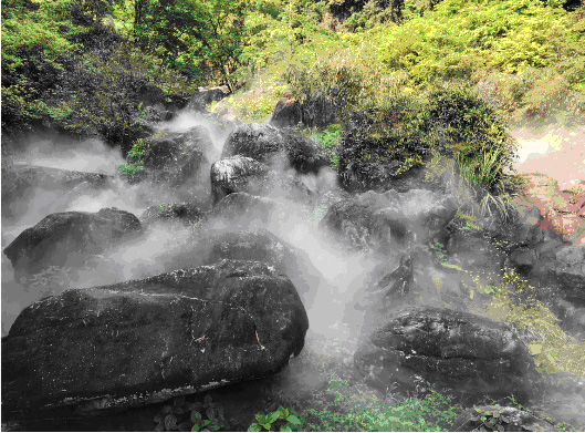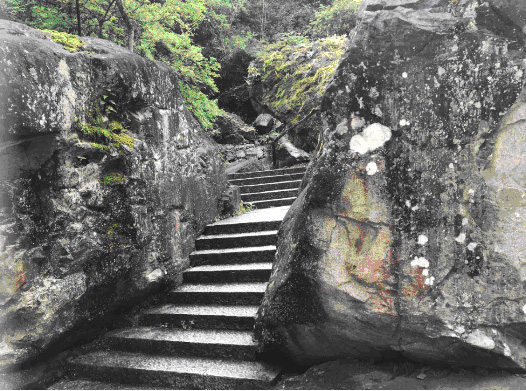 走過木橋踏上石階,我們一步步深入景區,深春略帶一絲炎熱的溫度被這幽深美景沖淡,讓人倍覺舒適。
