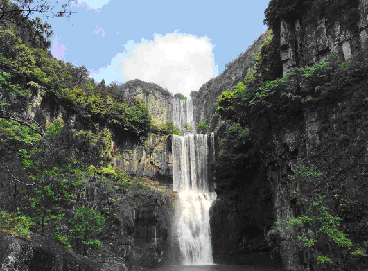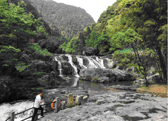 隨著逐漸擴大的水流聲,我們到達“觀瀑亭”,真正領略了“中華第一高瀑布”之稱的百丈漈三折瀑布,壯麗之景直讓人驚嘆此行不虛。 更讓我們為之動容的是瀑布二折處那一彎水簾洞之景,我們不顧被沖濺的水霧淋濕的風險,在水簾洞肆意奔玩,個個都成落湯雞,只留下陣陣歡笑。