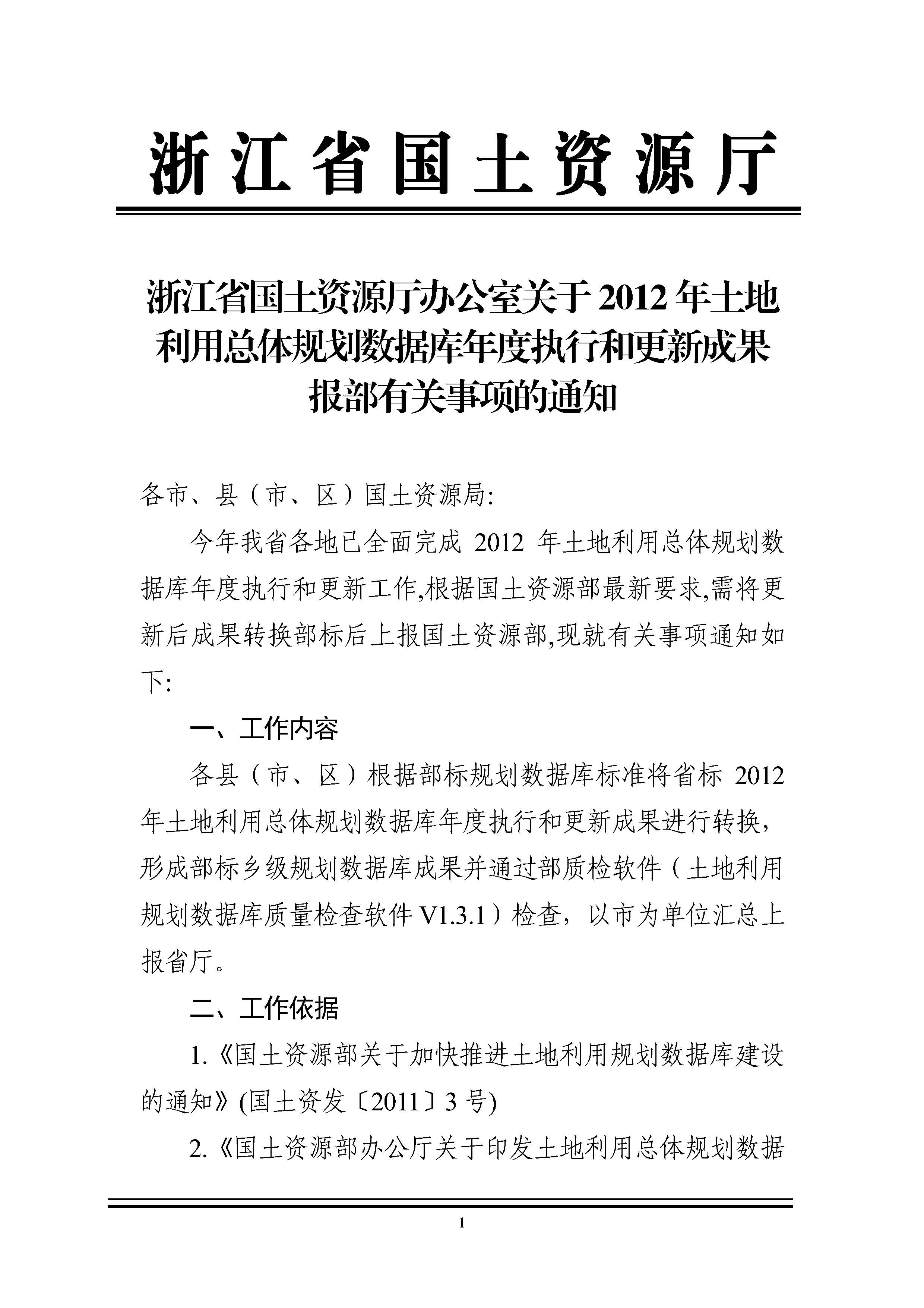 關于2012年土地利用總體規劃數據庫年度執行和更新成果報部有關事項的通知