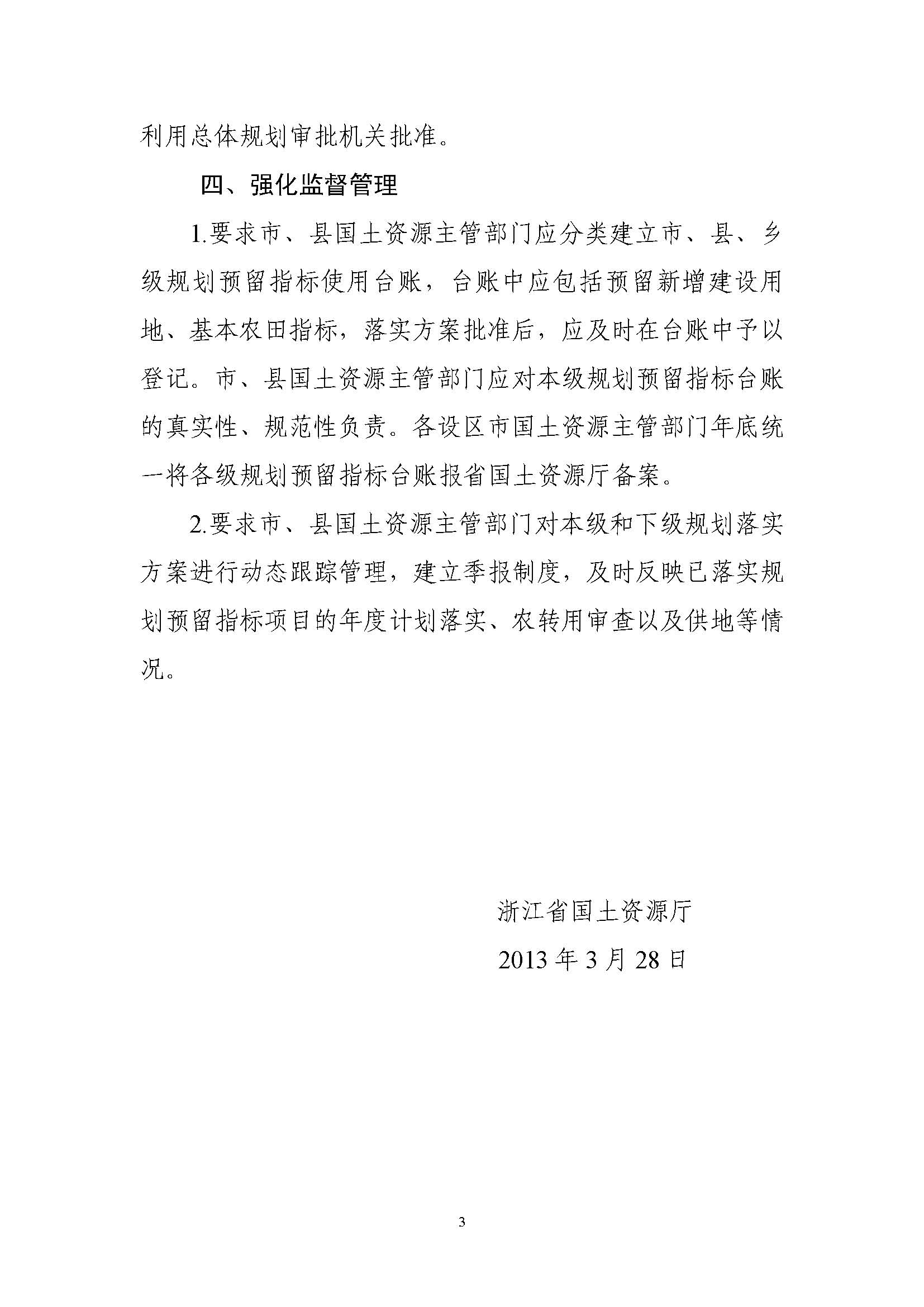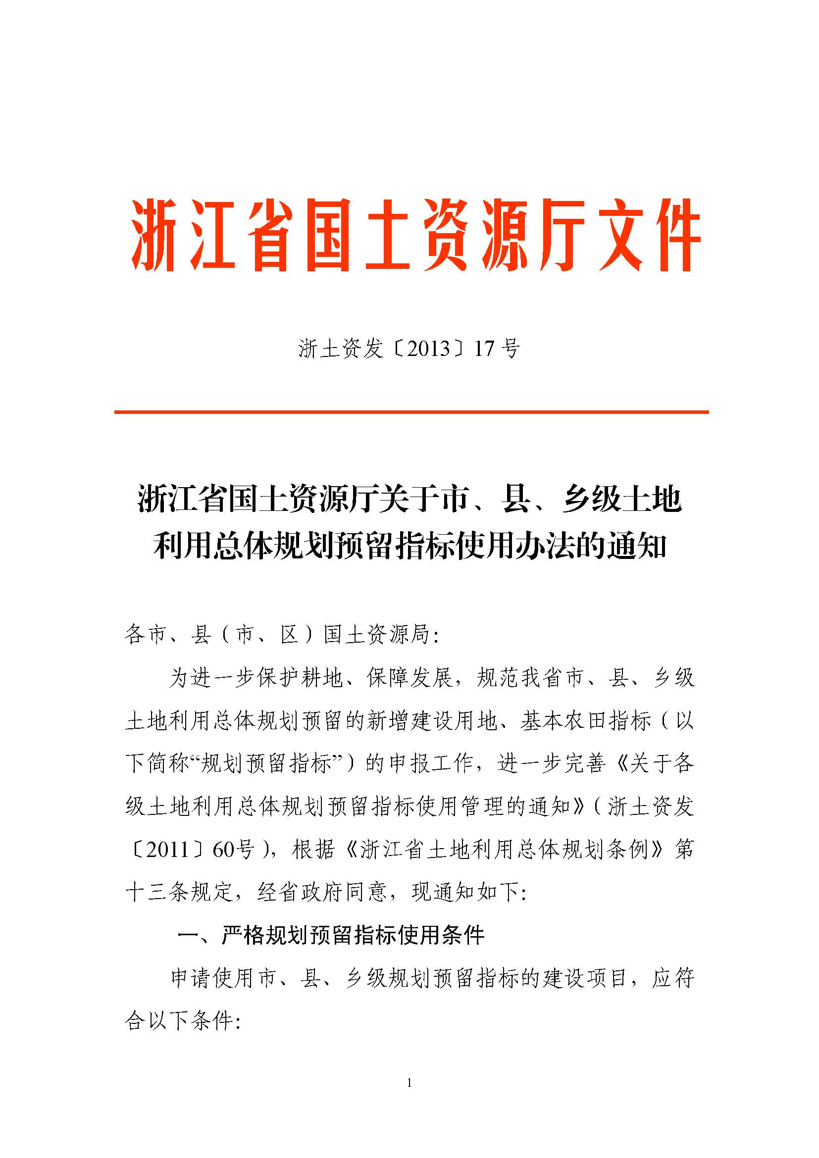 浙江省國土資源廳關于市、縣、鄉級土地利用總體規劃預留指標使用辦法的通知