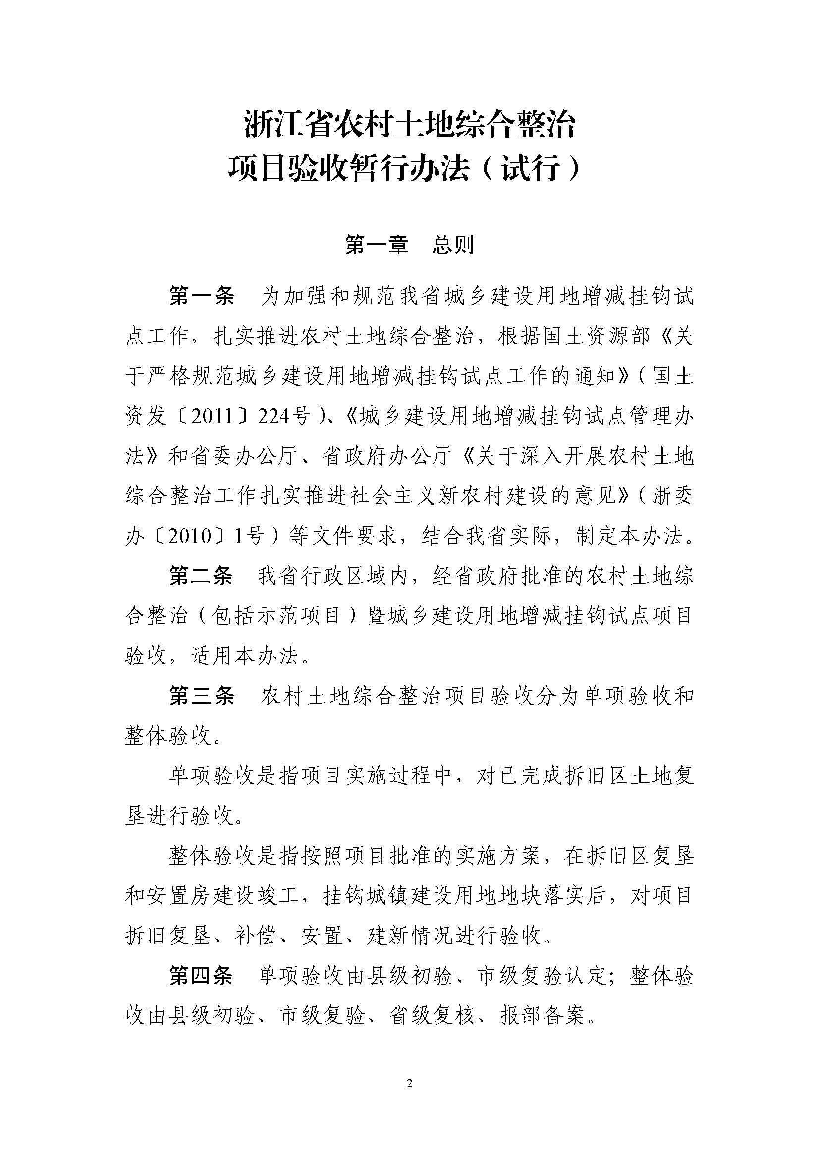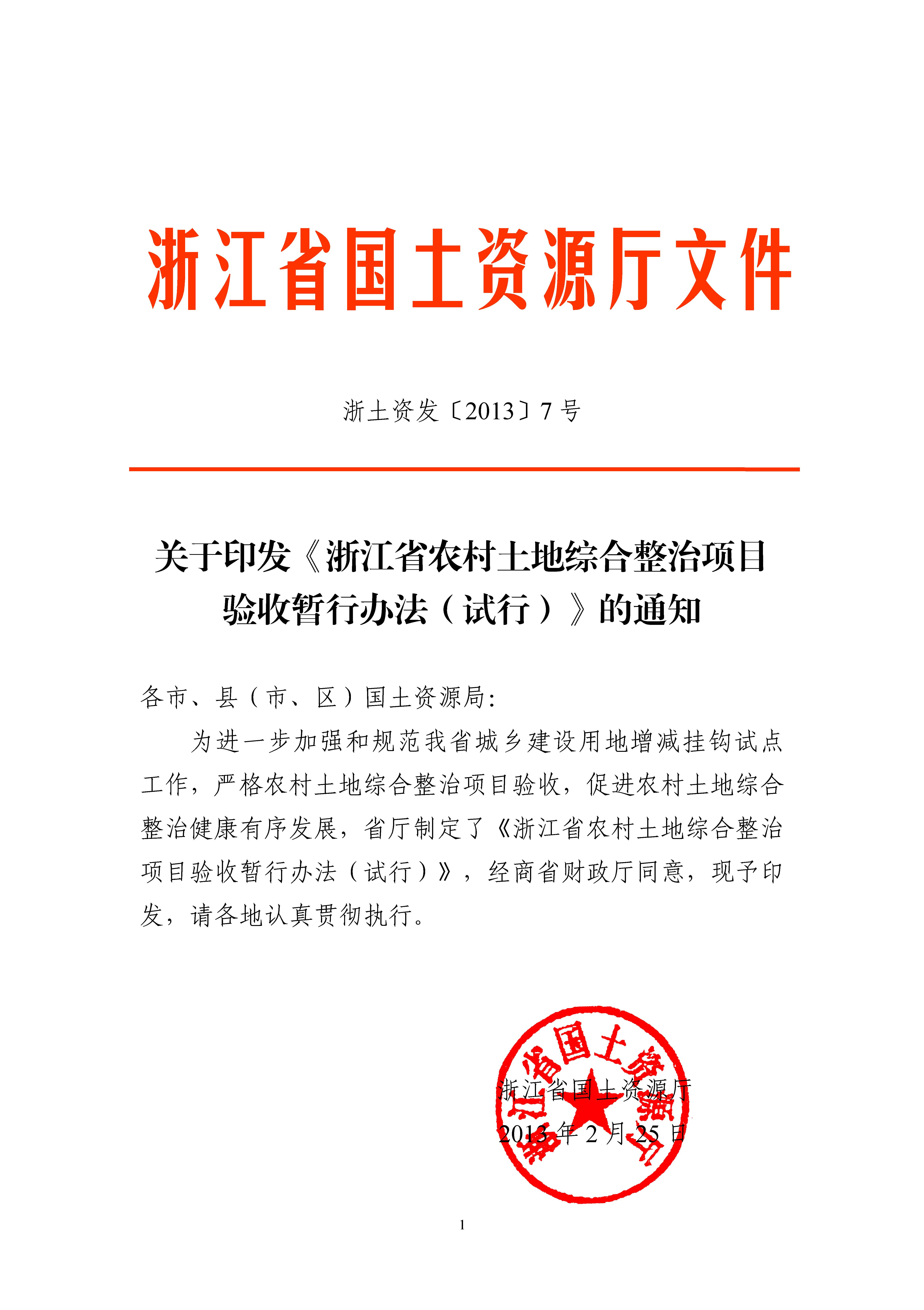 關(guān)于印發(fā)《浙江省農(nóng)村土地綜合整治項(xiàng)目驗(yàn)收暫行辦法(試行)》的通知